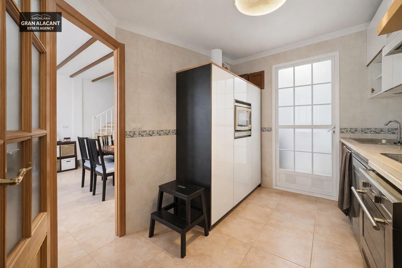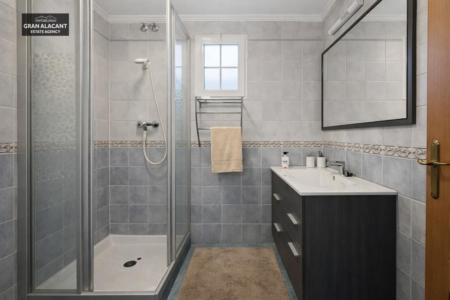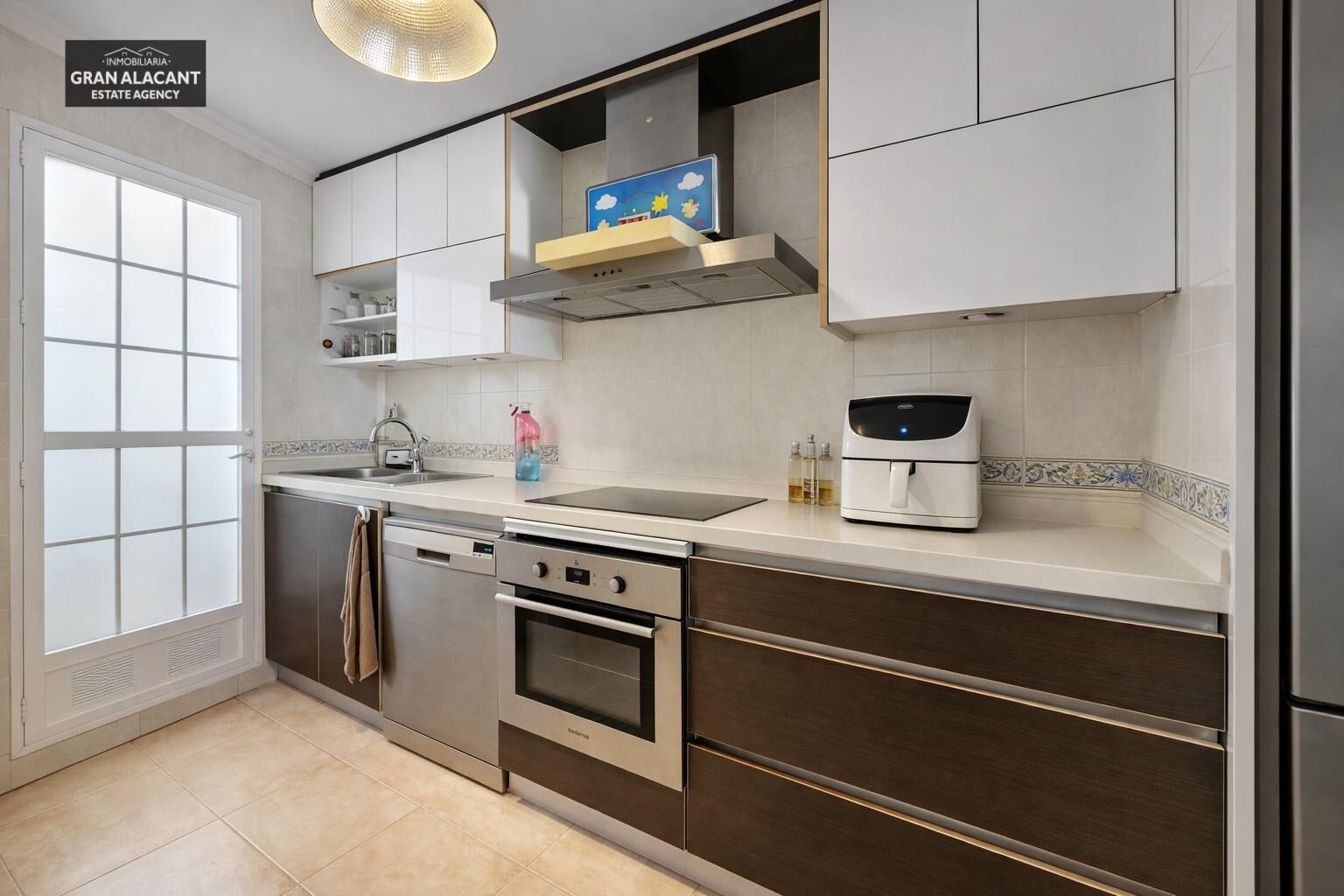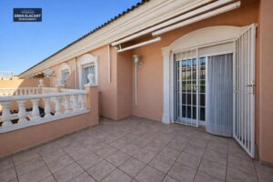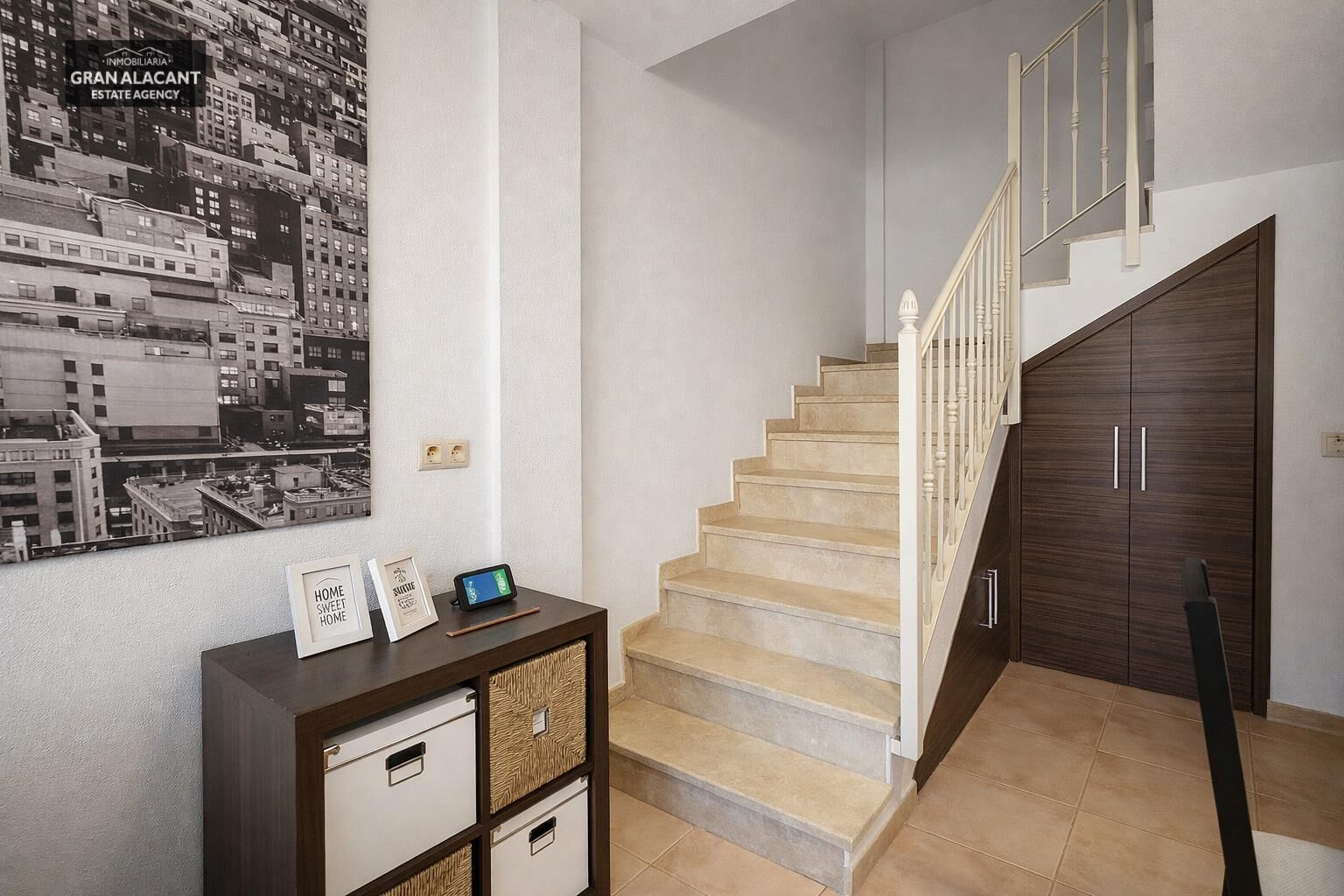 Gran Alacant has become one of the most sought-after residential addresses on the southern Costa Blanca — and this two-storey bungalow in the Mediterráneo urbanisation illustrates exactly why. A gated, private community with two swimming pools and tennis courts, parking practically at your front door, 900 metres to the beach, and 10 minutes to Alicante International Airport. It's a combination that's harder to find than it sounds.